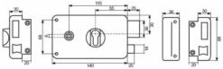 Coffre de 140 x 88 mm, entraxe de 60 mm.