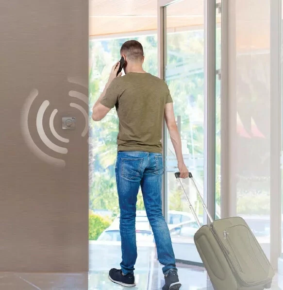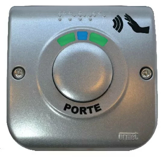 Marquage en braille et gravure du mot porte. 1 contact NO et 1 contact NF indépendants. I max. : 3A.