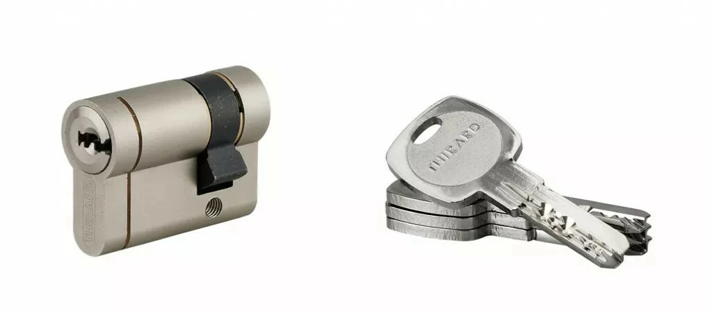 Mécanisme à 6 goupilles protection contre le crochetage. Protection contre le perçage par 1ère goupille + poussoir en acier trempé.