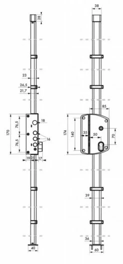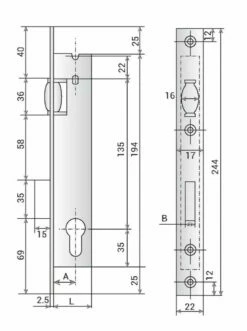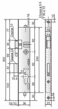 Coffre pour cylindre européen - axes 60, 70 et 80 mm