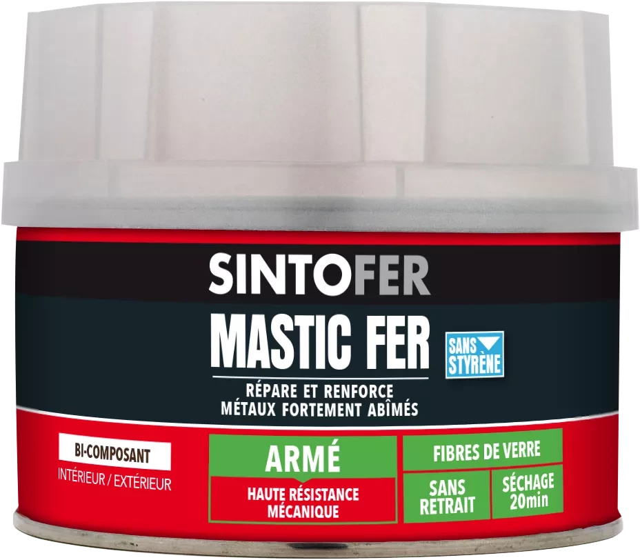 Mastic polyester bi-composant polyester armé de fibres de verre pour reboucher les trous débouchant et gros enfoncements sur les carrosseries, métaux et stratifiés.