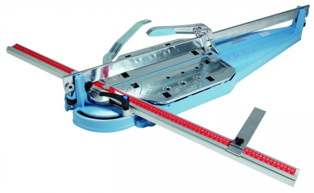 Système de coupe à pousser : extrêmement fort, il permet de couper aisément des matériaux particulièrement épais ou difficiles à couper. La casse du carreau est obtenue en appuyant avec le séparateur à proximité du bord du carreau par basculement de la poignée de coupe. Système de mesure angulaire. Protections antimarque sous le séparateur.