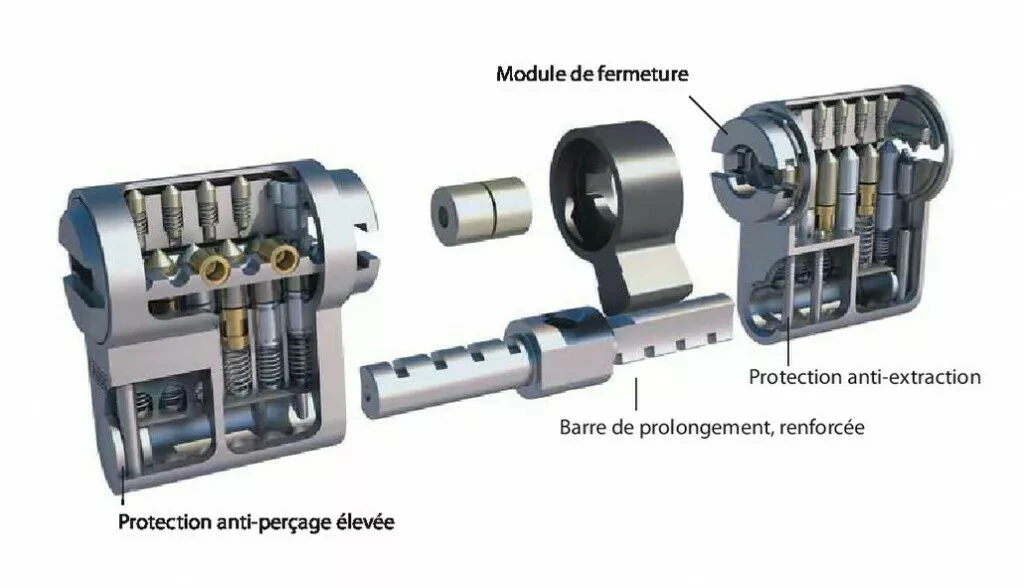Breveté jusqu’en 2030 + copyright. Système à 6 goupilles.