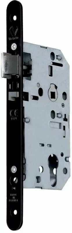 Fouillot carré de 7 mm. Pêne 1/2 tour bombé, en inox. Contre-pêne de sécurité en inox.