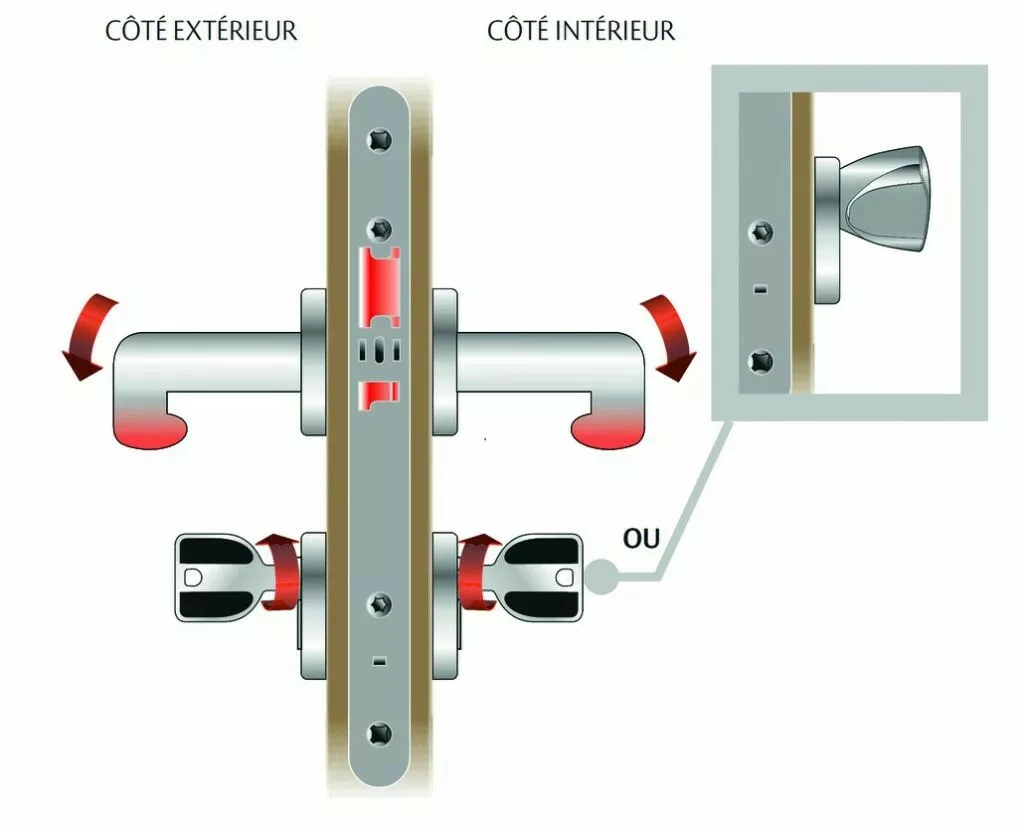Fermeture : condamnation à 1 tour à la clé (ou au bouton)