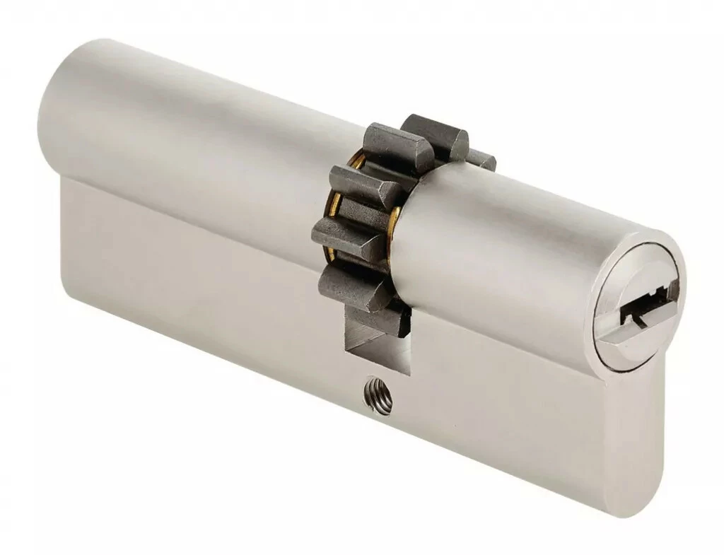Si vous utilisez un demi-ensemble à empreinte ronde, commandez le protecteur de serrure DEV 522. Cylindre à panneton crantée obligatoire pour cette serrure.