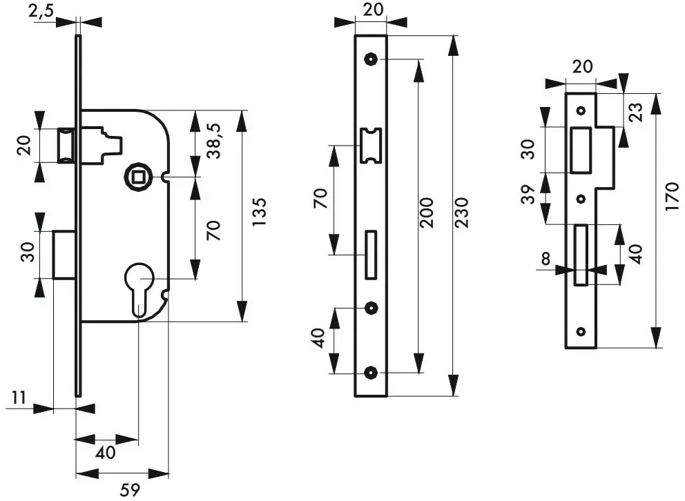 Coffre pour cylindre européen - axes 60, 70 et 80 mm