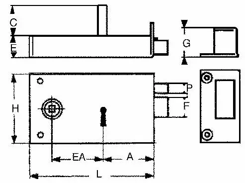 Largeur du pêne 1/2 tour de 23 mm (rep. F).