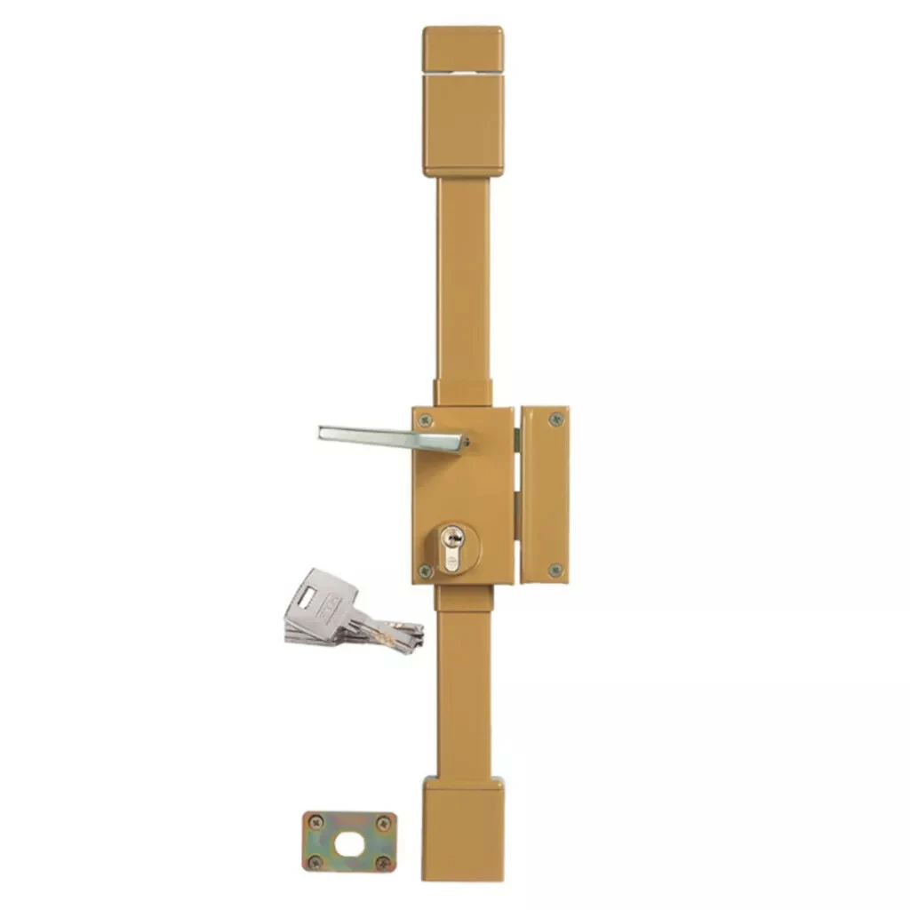Serrure en applique 3pts verticale à tirage ou à fouillot carré de 7 mm, cylindre profil européen.