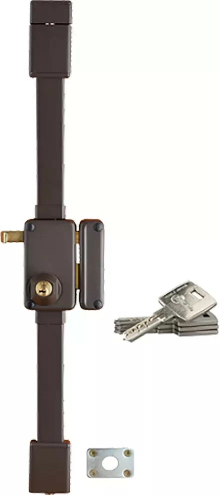 Tringles standard permettant une condamnation de porte de 1,65 m à 2,25 m, mécanisme intérieur type équerre permettant la manuvre du 1/2 tour avec la clé, de lintérieur comme de lextérieur.