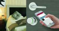 Tringles télescopiques hauteur 2660 mm. Gâche haute réglable. Livrée avec 3 clés.