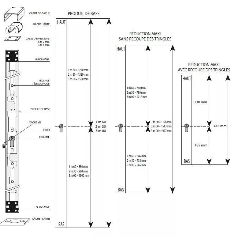 L’ajustement en longueur de la tringlerie se fait par simple réglage téléscopique à l’aide d’une clé.