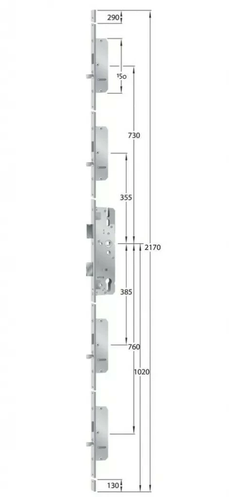 4 pênes cylindriques et 1 pêne dormant 1/2 tour.