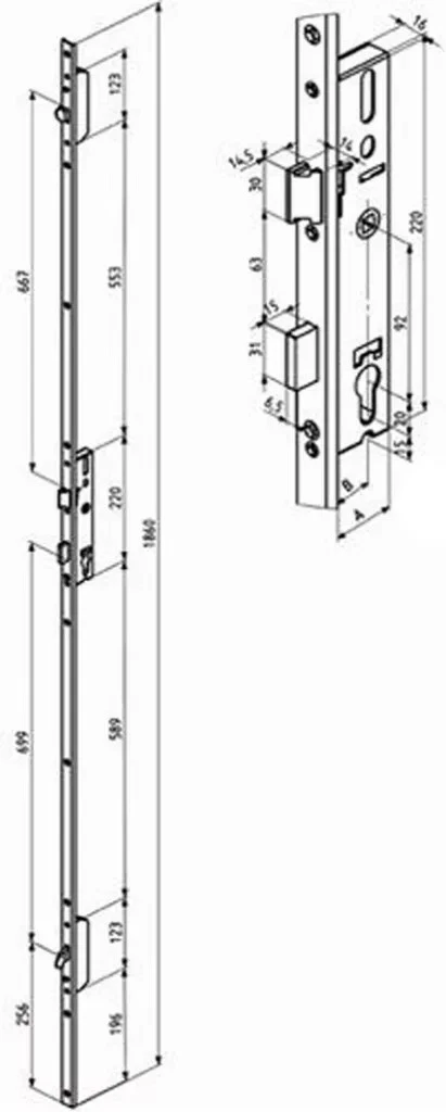 de 8 mm, entraxe 92 mm. Têtière en U inox