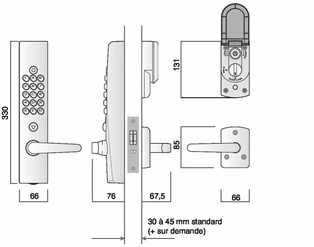 Réversible droite / gauche. Livré avec deux clés pour le codage et l’ouverture de secours.