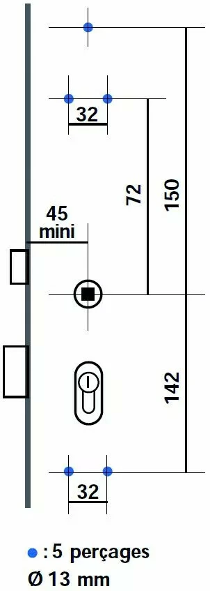 axe à partir de 45 mm. Pour portes intérieures dont l’épaisseur se situe