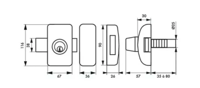 Cylindre laiton 5 goupilles ajustable de 35 à 80 mm.