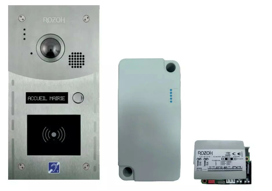 Conforme ERP, pose en encastrement, finition inox. Centrale GSM + carte relais 4G.